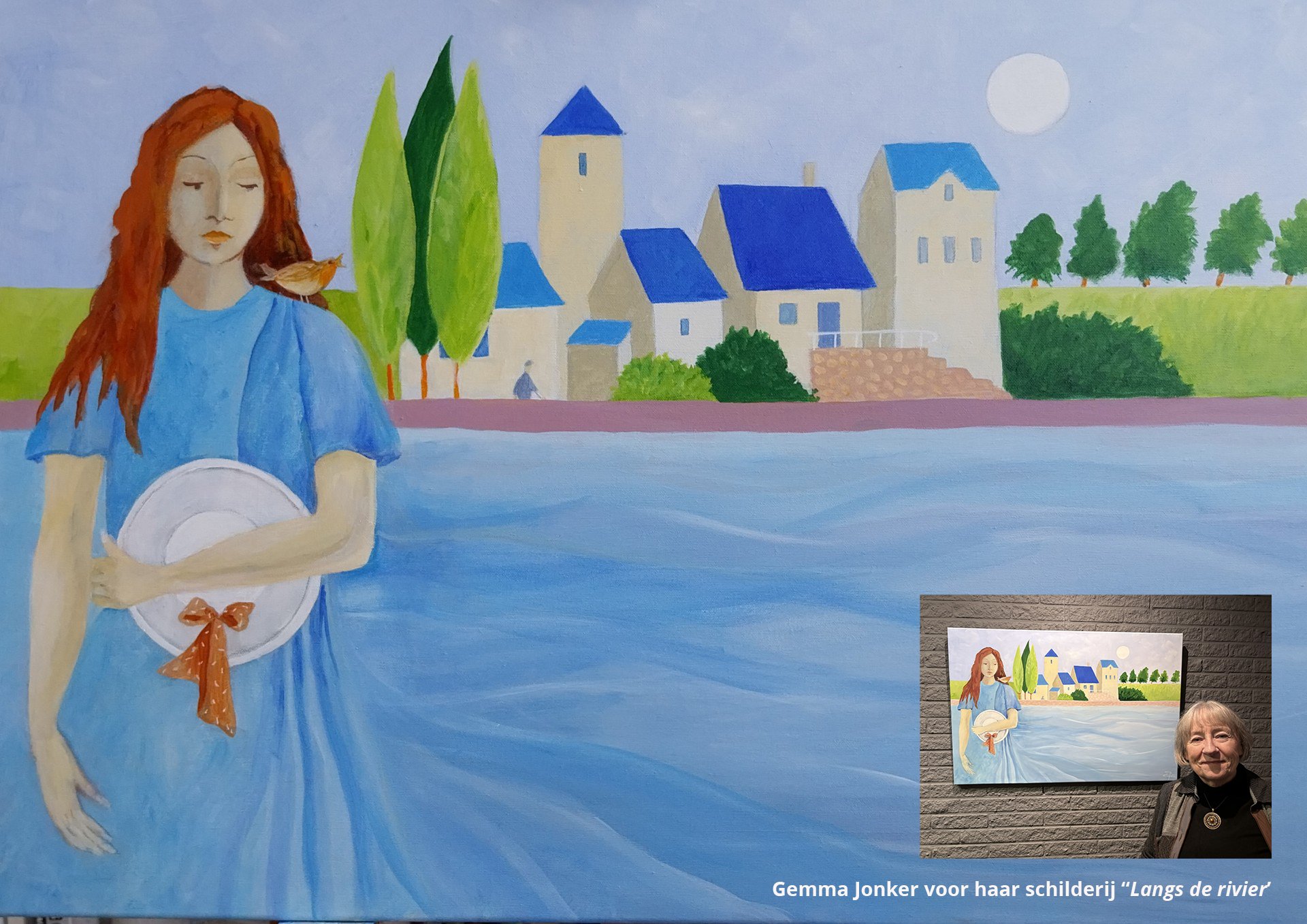 Getoonde afbeelding: schilderij 'Langs de river' van Gemma Jonker.