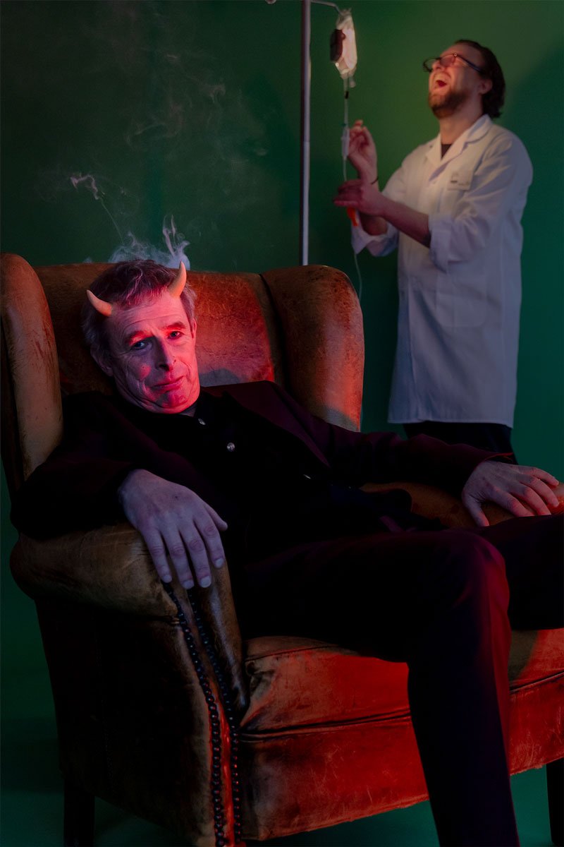 Met heel veel humor, dat dan weer wel.
